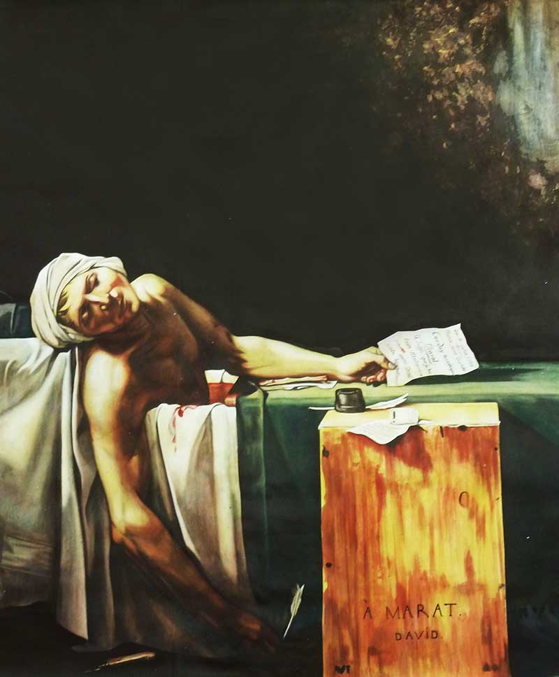 Published 13. Dezember 2015 at 800 × 969 in ARCHIV_ Bühnenmalerei „Der Tod des Marat“ nach J.L. David Acryl auf Nessel 222 cm x 288 cm