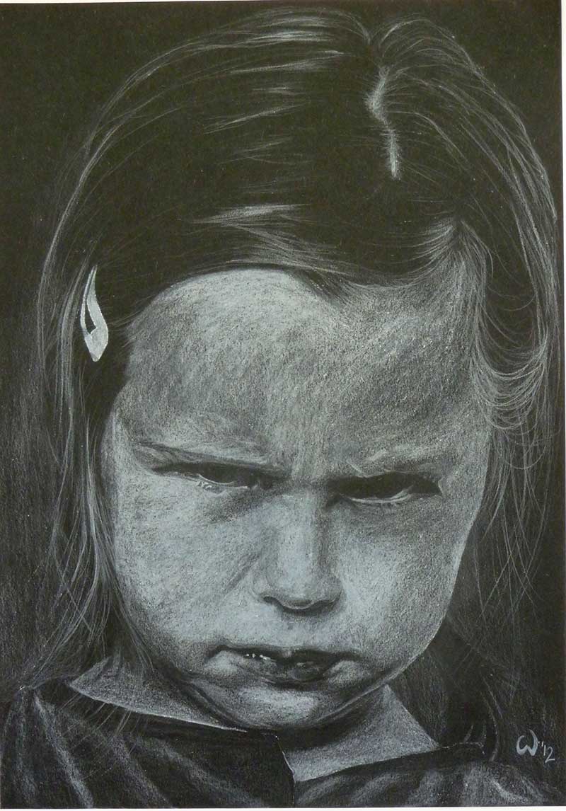 Published 13. Dezember 2015 at 800 × 1146 in PORTRÄTS „Trotziges Mädchen“ Buntstift auf Tonpapier DIN A4